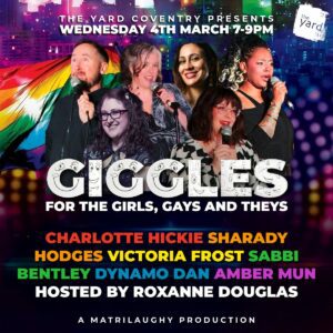 Giggles for the Gals, the Gays and the Theys: Matrilaughy at The Yard will be an inclusive, lgbtqia+ positive, feminist and friendly night of stand up comedy. We aim for hilarious moments and a whole lot of good vibes. Whether you’re gal pals, “gals being pals”, or just looking for a good night out, this FREE event is made for you.