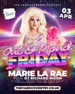 We are turning up the volume for our Out and Proud Night, and the spectacular Marie La Rae is taking over The Yard stage. Expect unapologetic anthems, fierce lip-syncs, show-stopping looks, and a whole lot of love in the room. Whether you are coming to slay, sway, or just soak up the incredible energy, this is a night dedicated to our beautiful community.