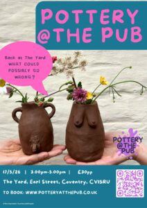 Come along for a fun and creative pottery event at your local! Join us for a two-hour pottery experience where we’ll bring everything you’ll need to get your hands dirty and create your own unique pottery masterpiece.