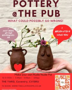 Come along for a fun and creative pottery event at your local! Join us for a two-hour pottery experience where we’ll bring everything you’ll need to get your hands dirty and create your own unique pottery masterpiece.