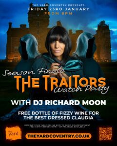 The ultimate game of deception is coming to an end, and there’s only one place to find out who walks away with the prize pot! Join us at The Yard on Friday, 23rd January as we screen the Traitors Grand Finale LIVE on our big screen.